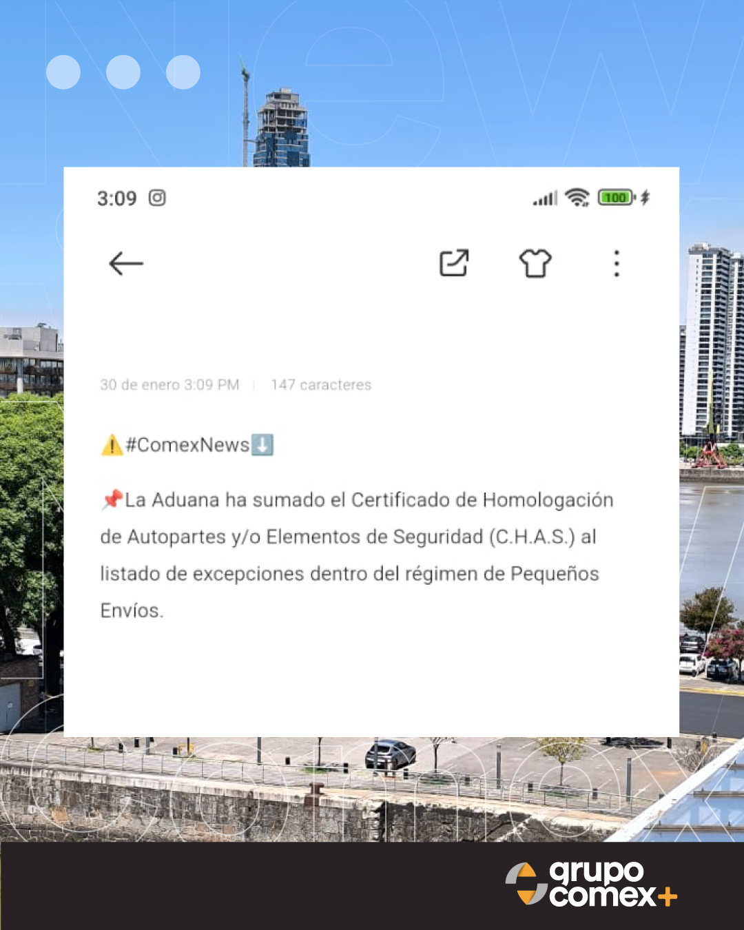 C.H.A.S.: Aduana exime el CHAS en régimen de pequeños envíos La Aduana ha sumado el Certificado […]